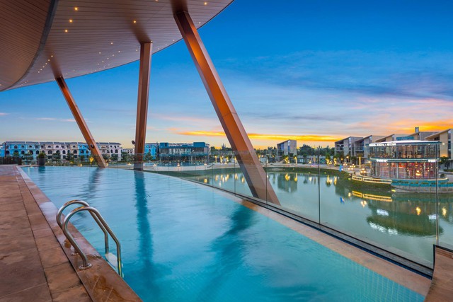 Regal Residence Đồng Hới không chỉ là một công trình để ở, mà là một hệ sinh thái sống toàn diện, nơi cư dân ‘chạm’ đầy đủ tiện ích, giá trị văn hóa, và cảm hứng sống hiện đại – tất cả trong một bước chân”. Ảnh hồ bơi Regal Pool một tiện ích của cư dân.